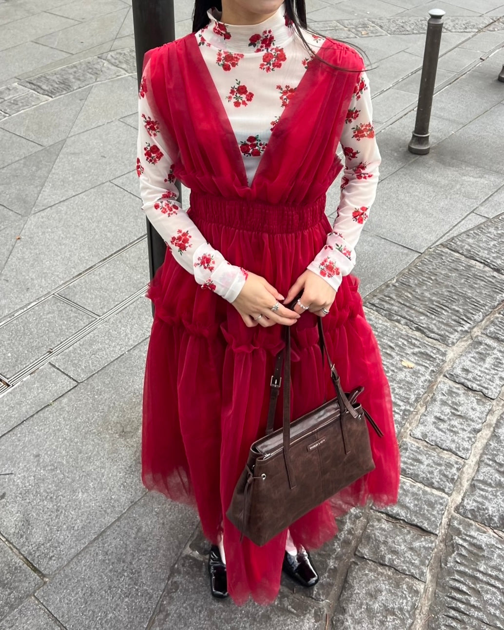 Red bouquet see-through tops (High / Round neck)