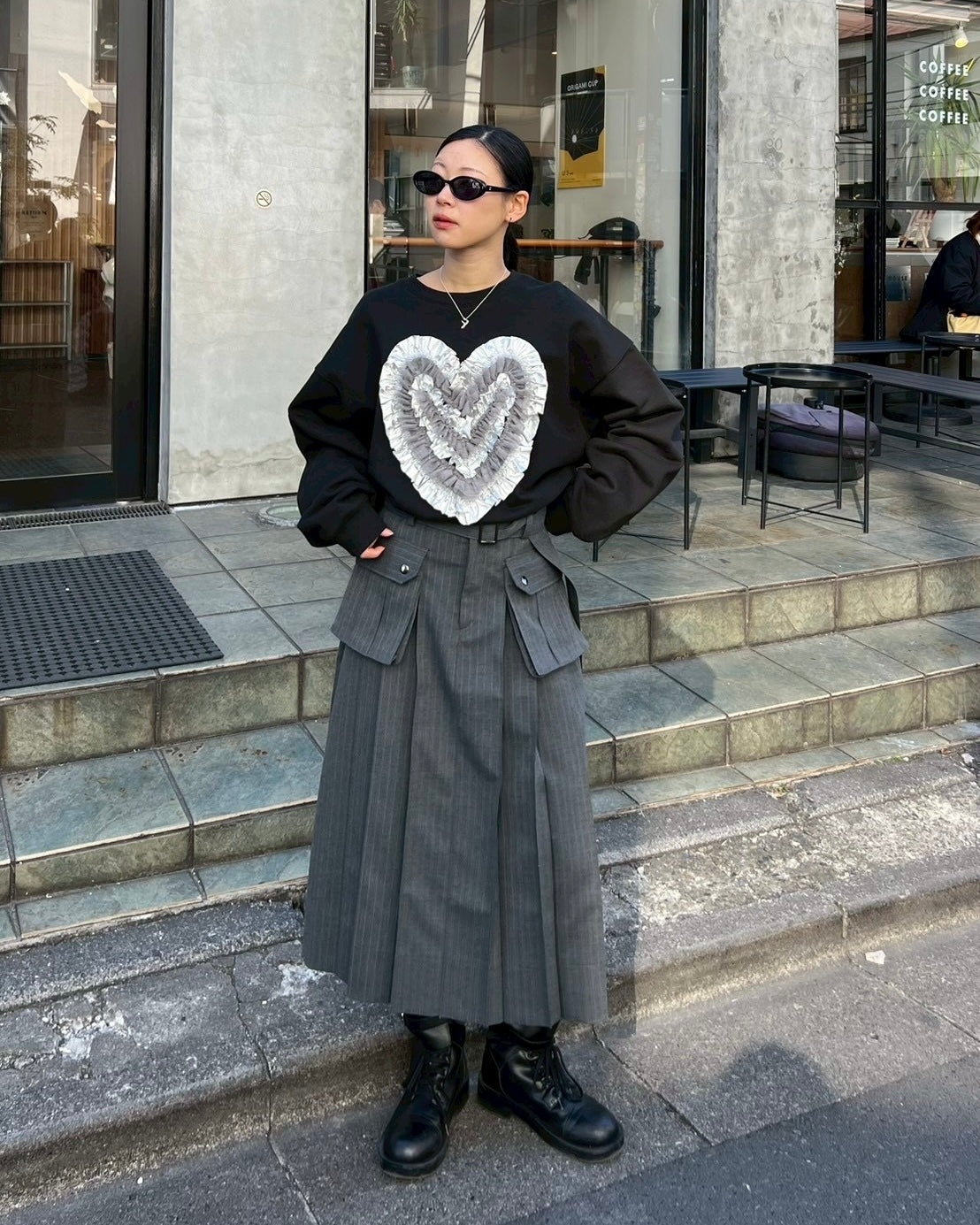 Heart tulle sweatshirt (black)