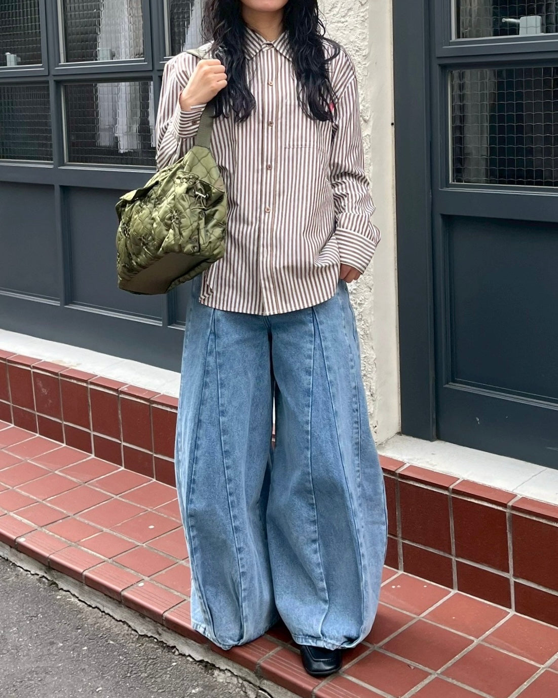 Pleated balloon denim pants