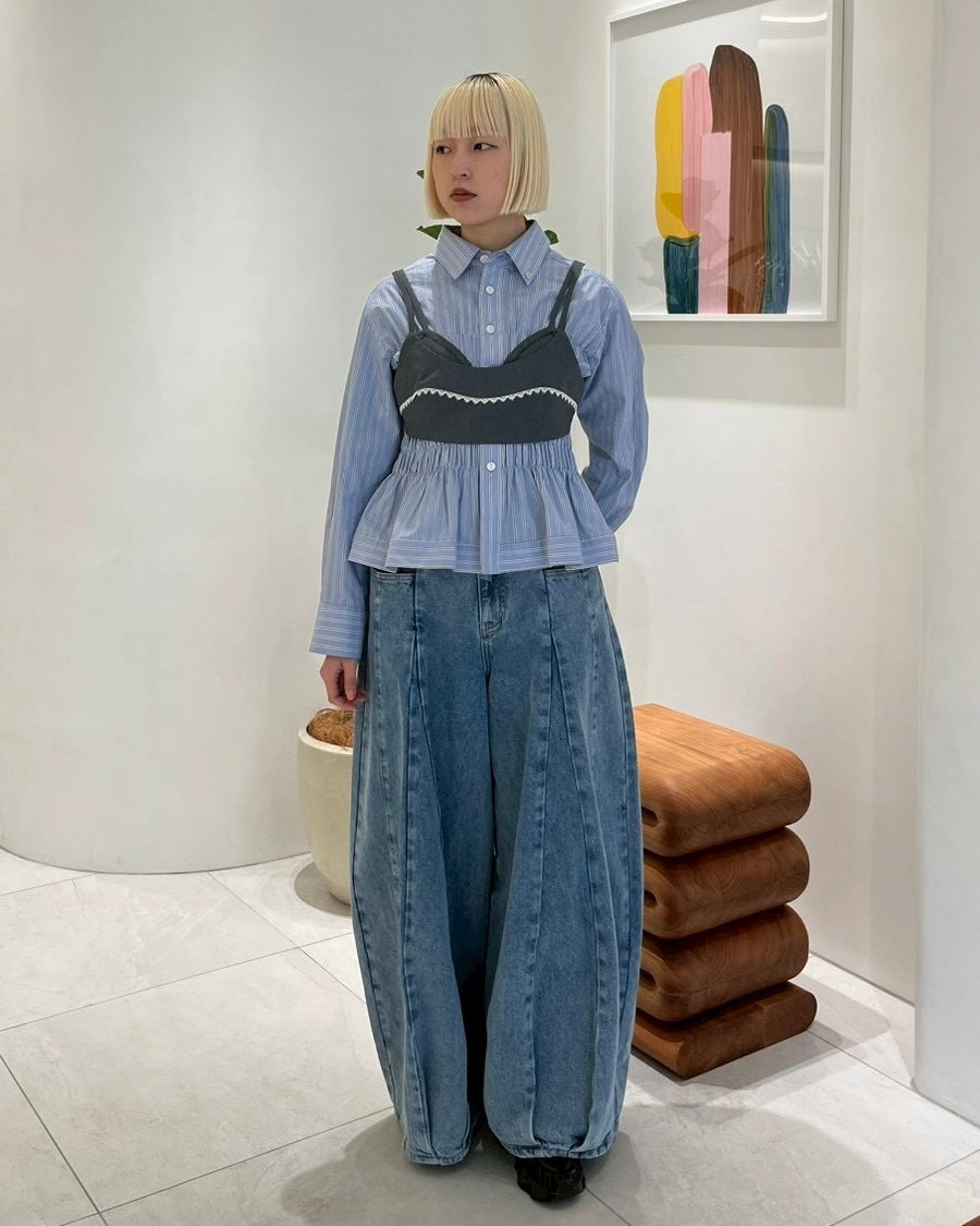 Pleated balloon denim pants