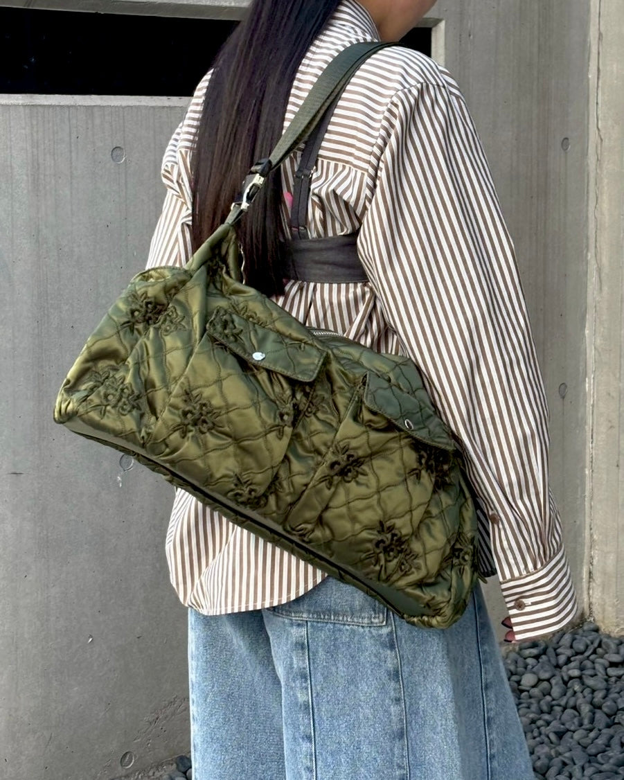 Flower quilted shoulder bag (khaki)