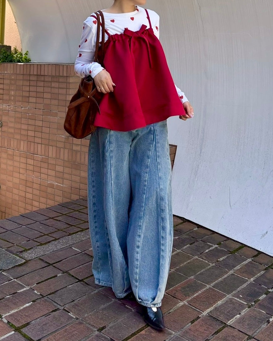 Pleated balloon denim pants