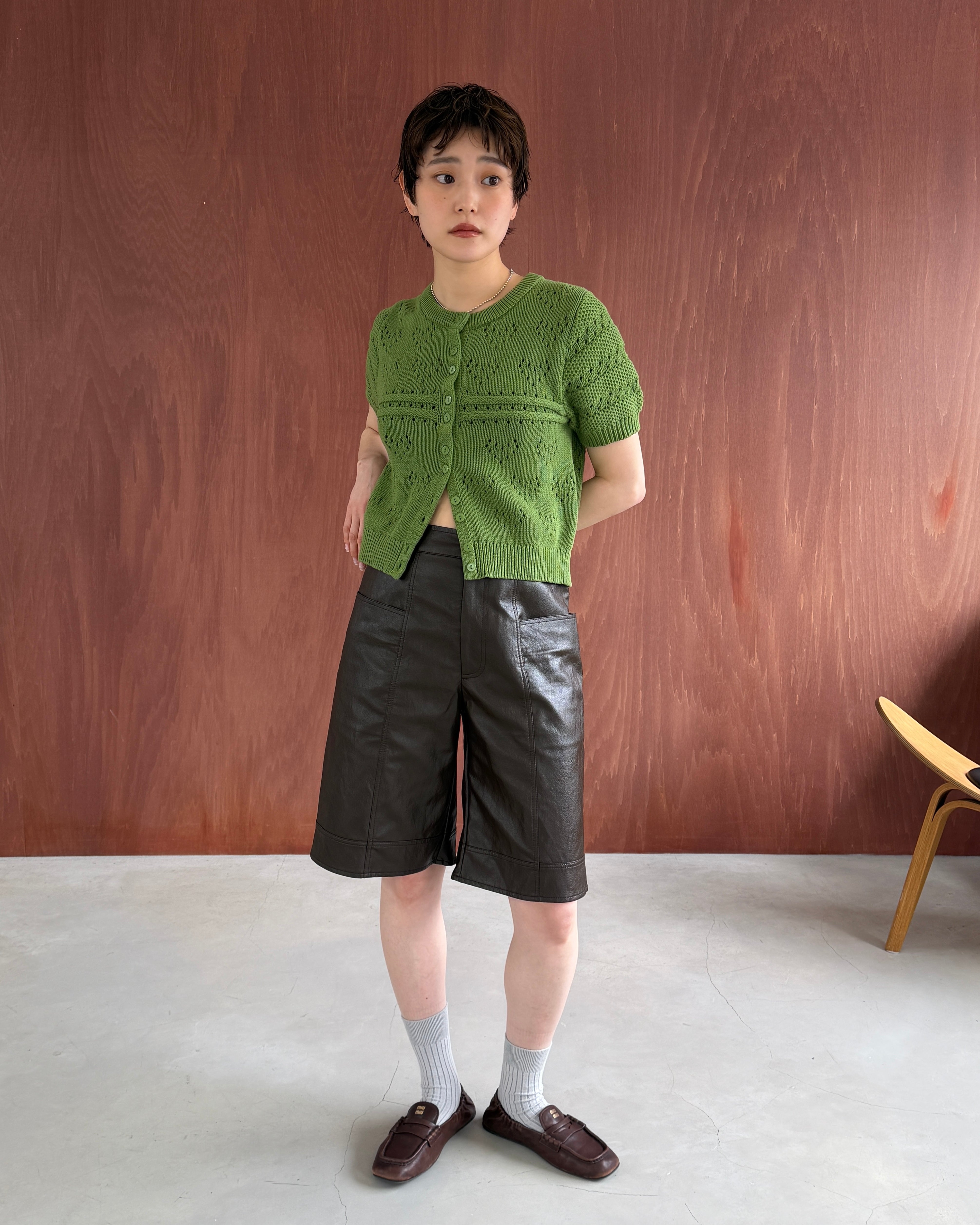 LEATHER-LIKE HALF PANTS