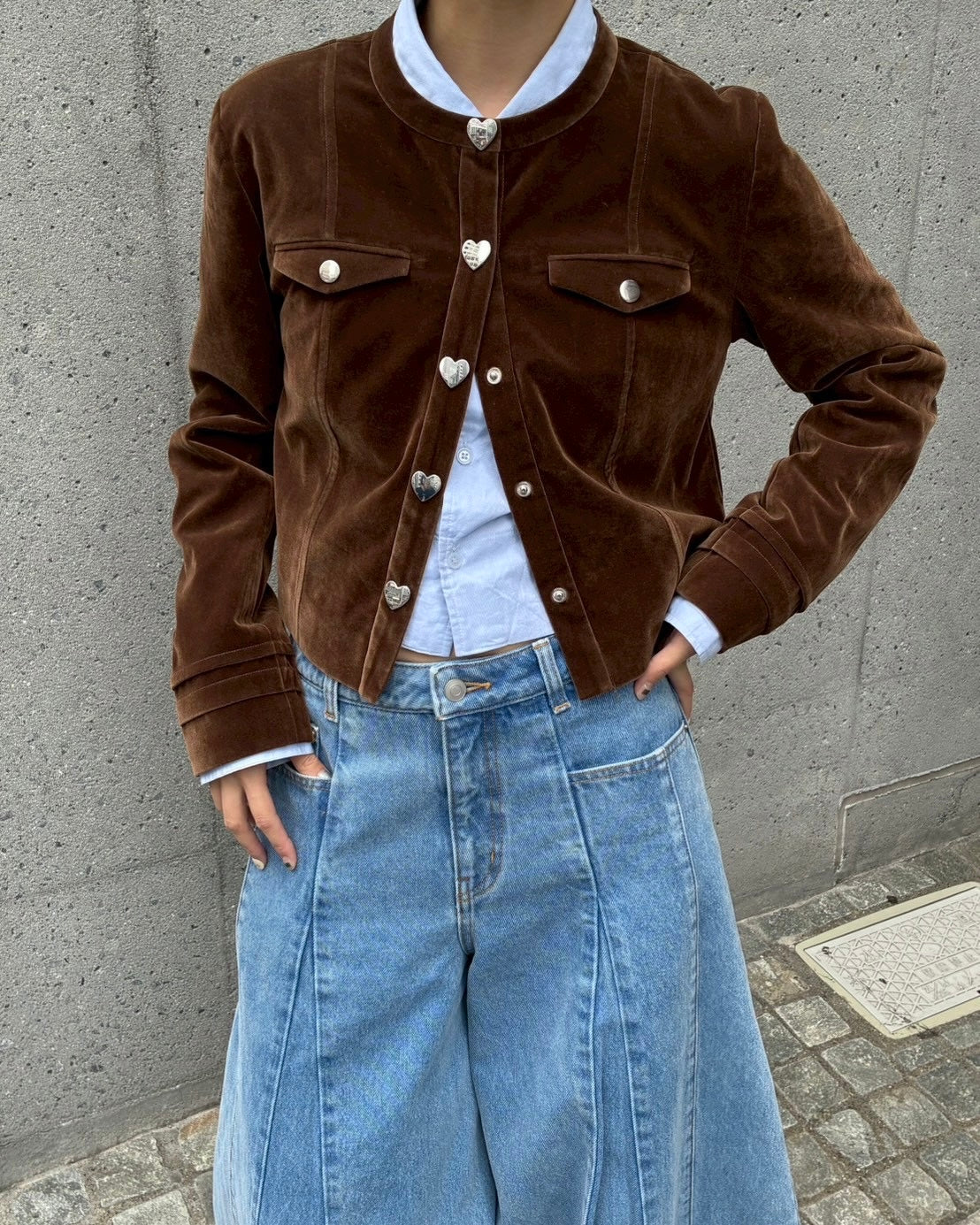 Heart button velvet jacket