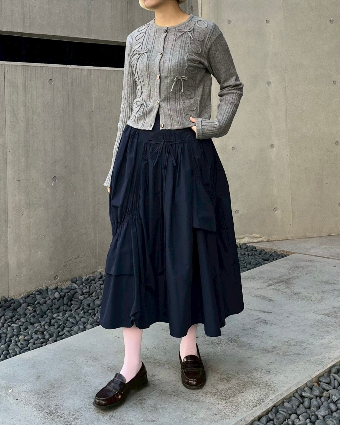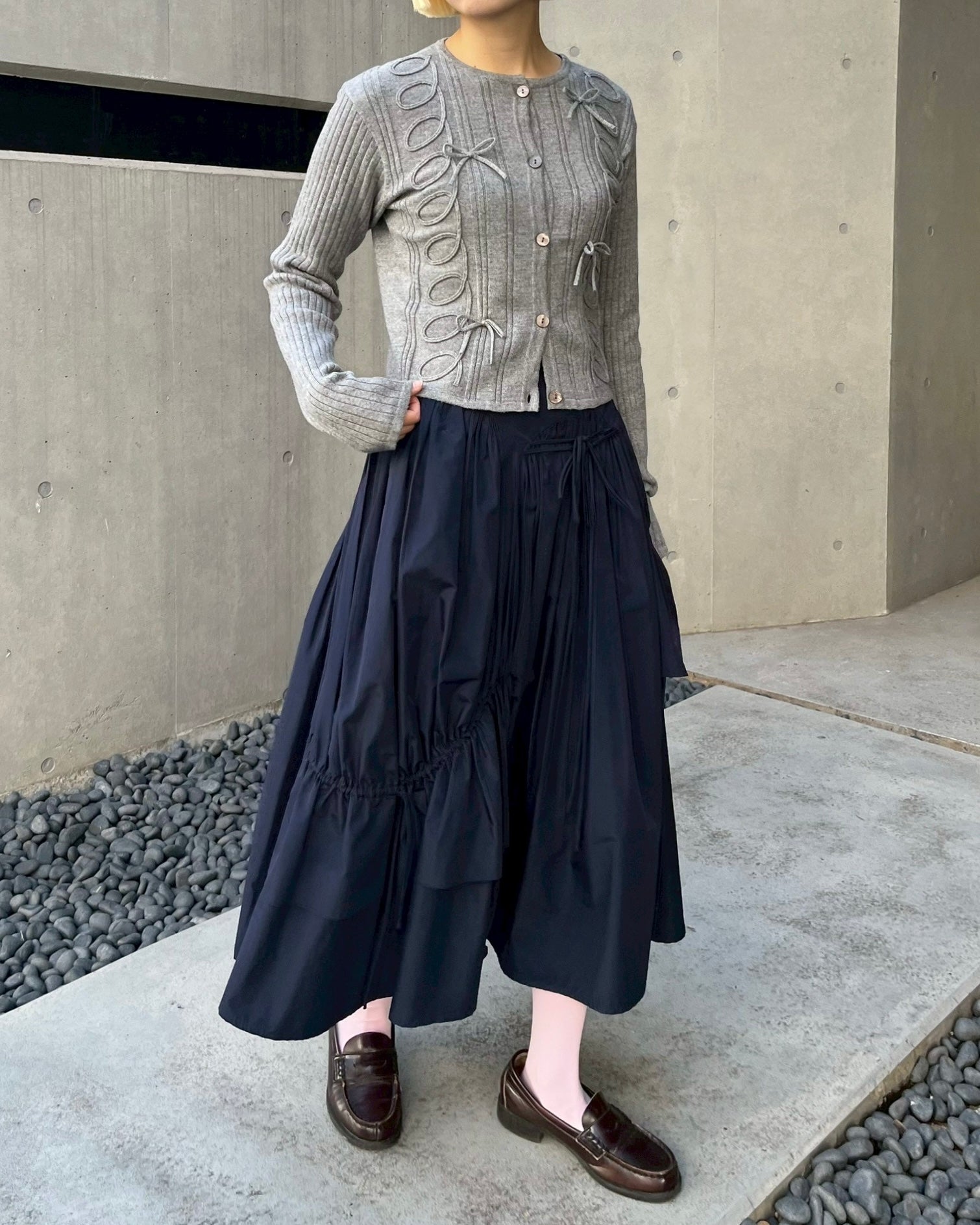 Kurukuru ribbon rib knit cardigan (gray)