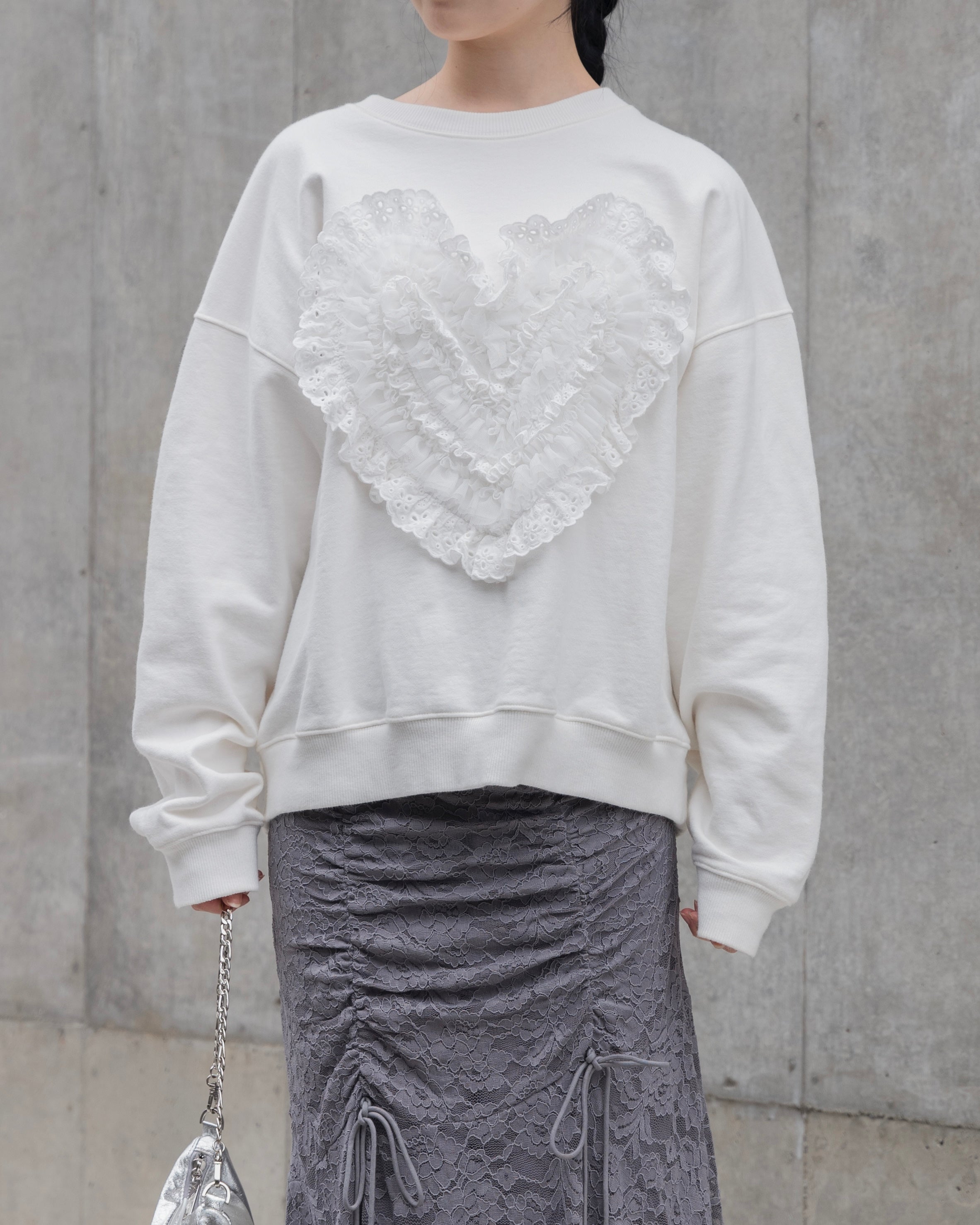 Cotton lace heart sweatshirt (gray)