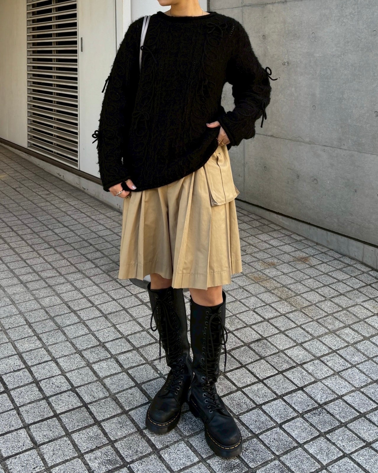 Kurukuru ribbon loose knit (black)
