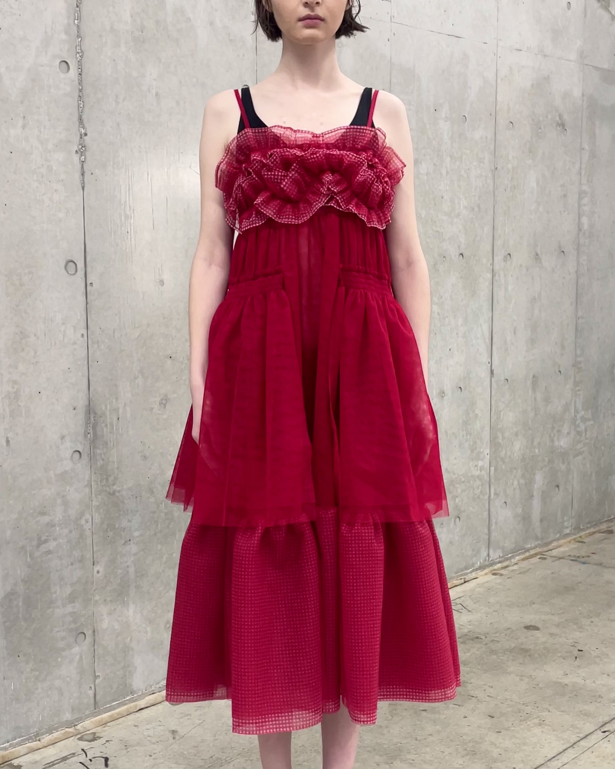 This pop cami dress features an elegant red that combines vibrancy and depth, and features subtle gingham checks.