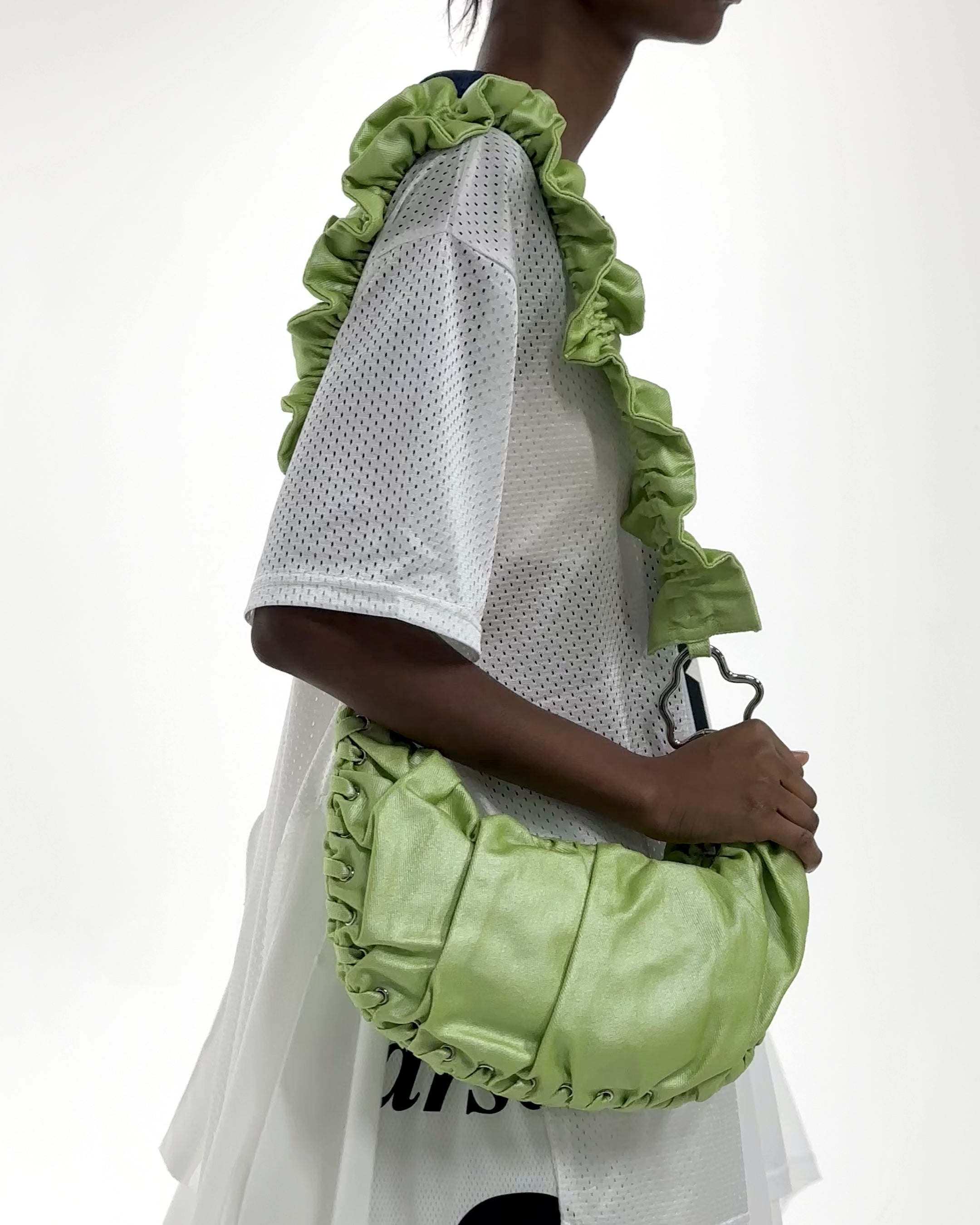 A half -moon -type shoulder bag with a rounded and catchy form.