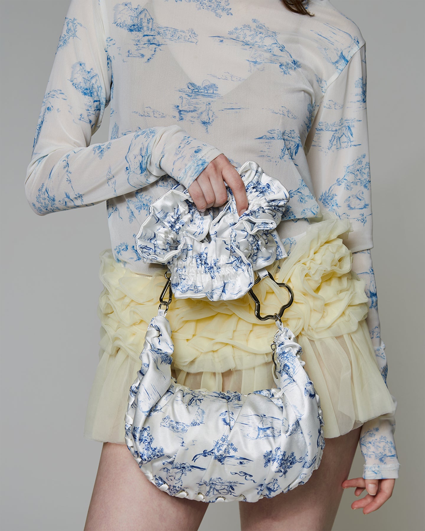 Half-moon gathered bag (Toile de Jouy) Sale price¥24,900