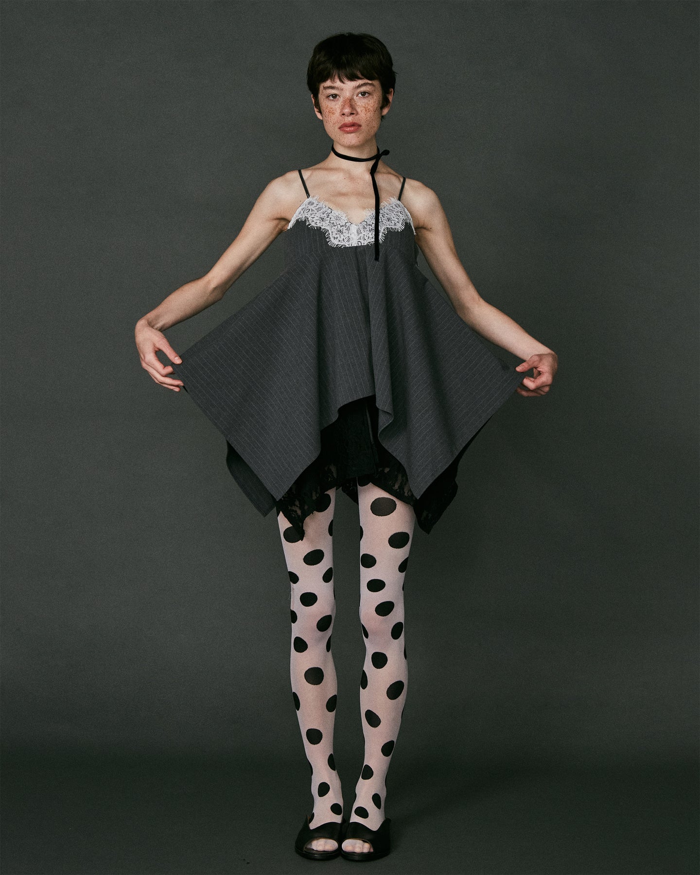 The relaxed look on the back and delicate shoulder straps express sophistication, while the chest is decorated with romantic lace, adding details that will never forget the feminine essence.