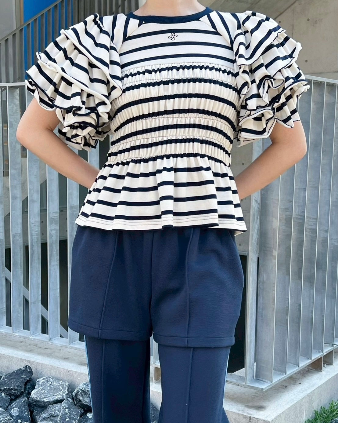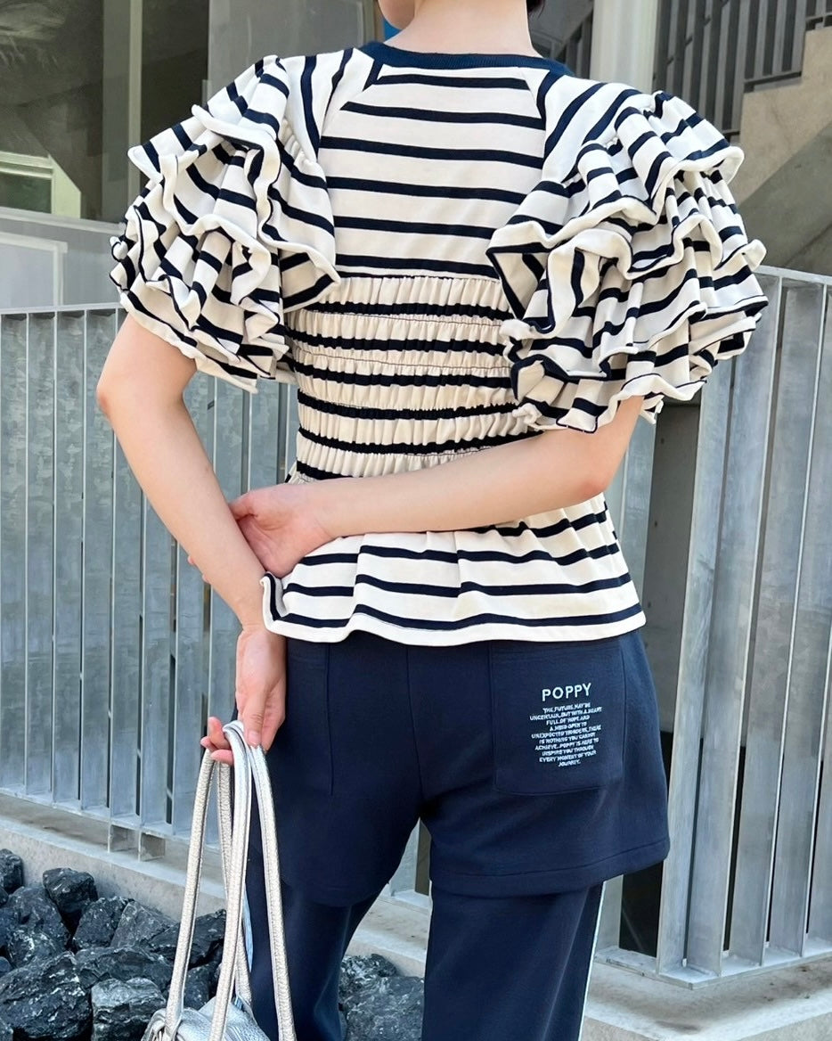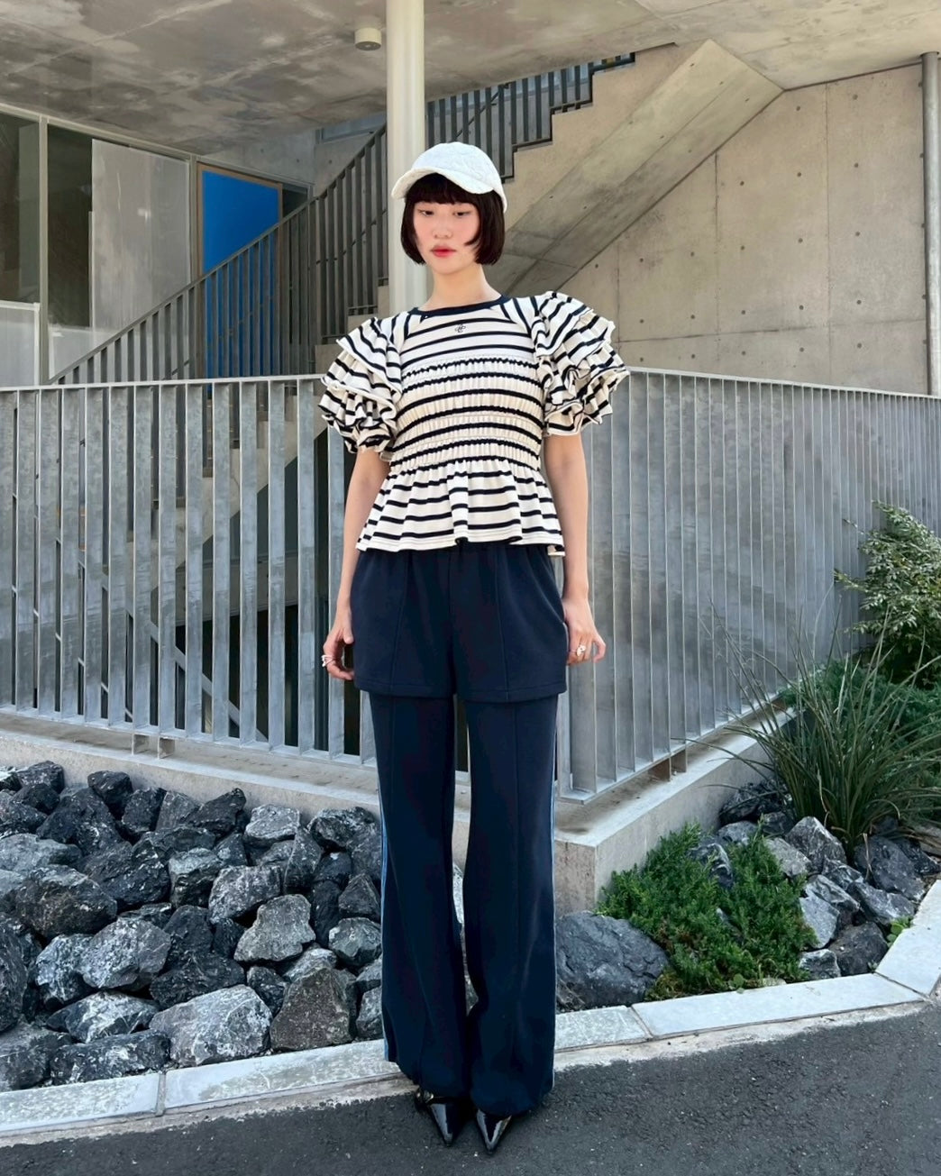 플라워 크로스 스티치 프린트 스웨트셔츠: size 1