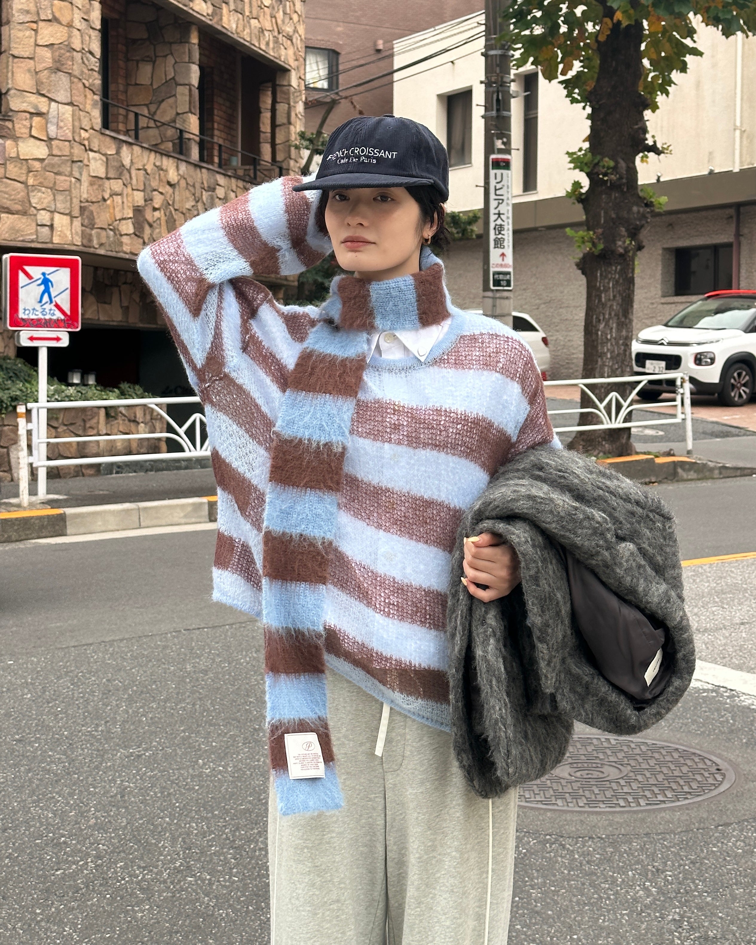 보더 로우 게이지 니트 스웨터