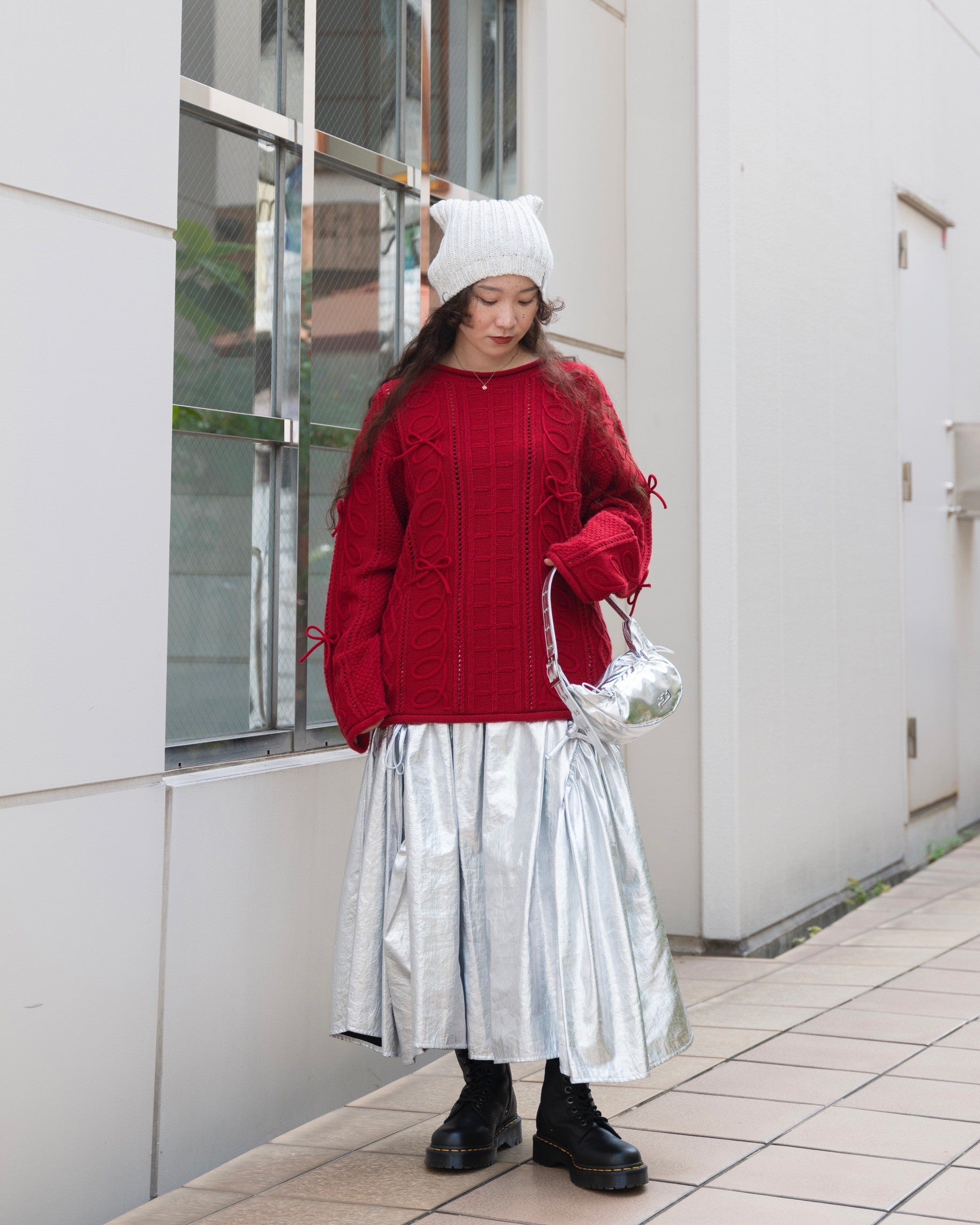 플라워 크로스 스티치 프린트 스웨트셔츠: size1