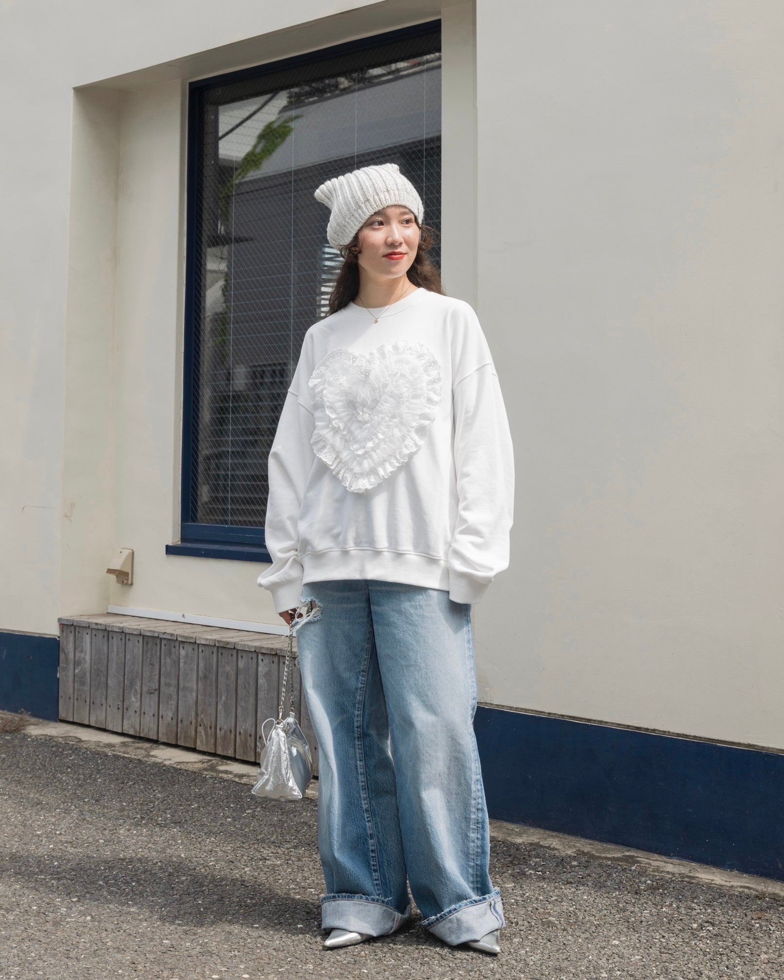 플라워 크로스 스티치 프린트 스웨트셔츠: size1