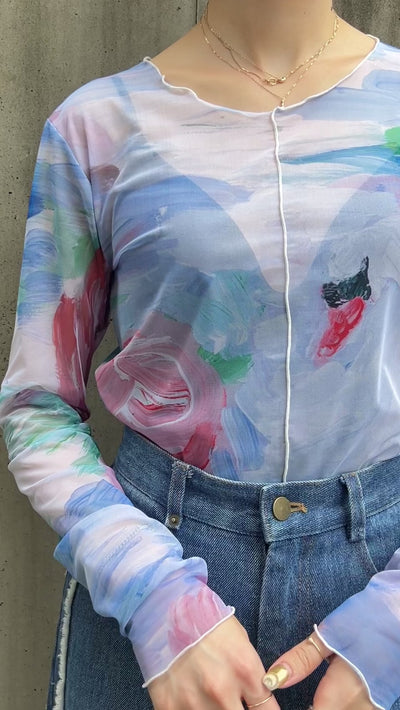 Swan see-through tops (High / Crew neck)highneck 할인 가격¥12,600
