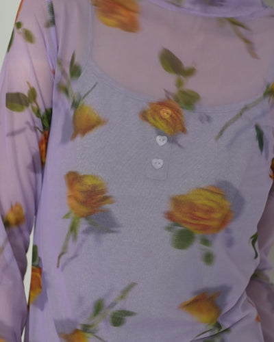 輪郭は薄れ、影さえも背景に溶け込み、まるで身体の周りを漂うように花々が舞います。