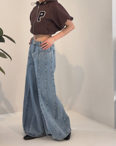 プリーツデザインとボリューム感のあるバルーンシルエットが印象的なデニムパンツ。