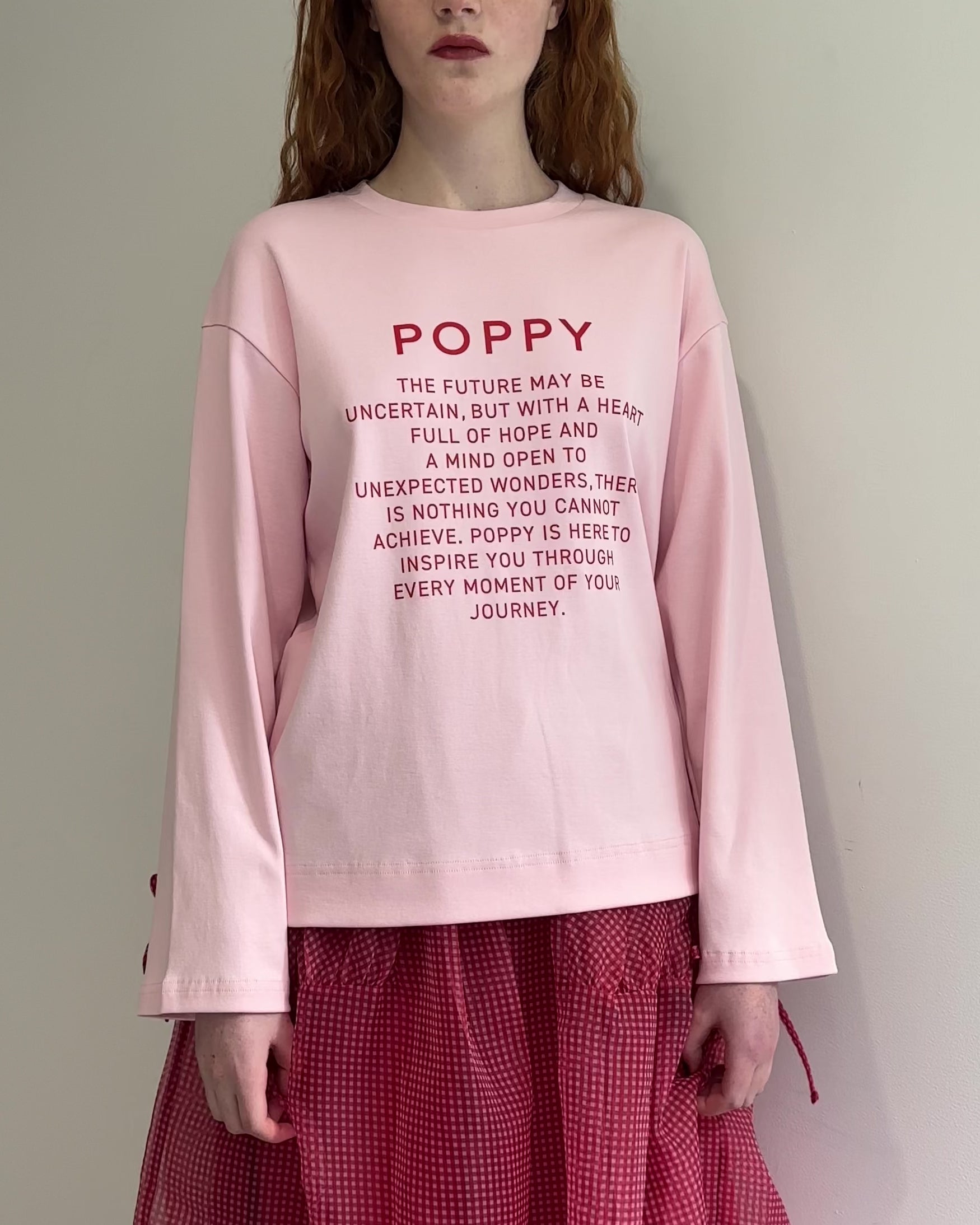 POPPYのロゴとブランドメッセージが綴られたプリントロンT。