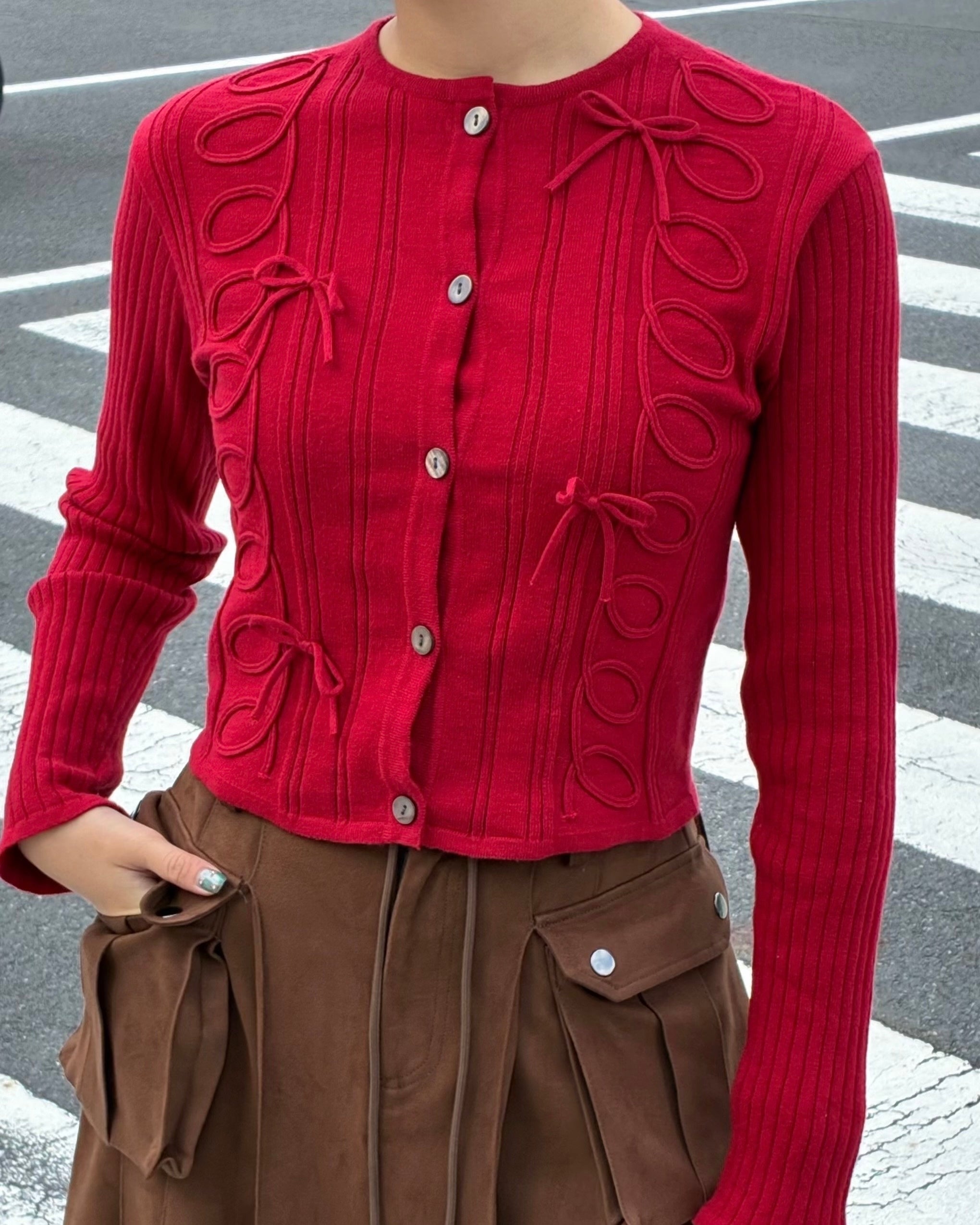 Kurukuru ribbon knit cardigan