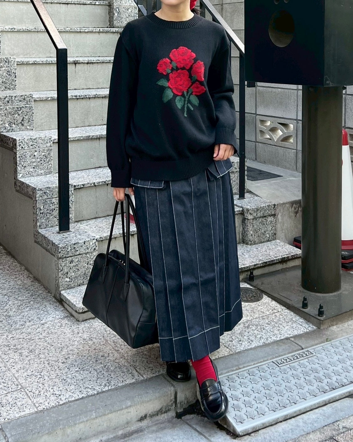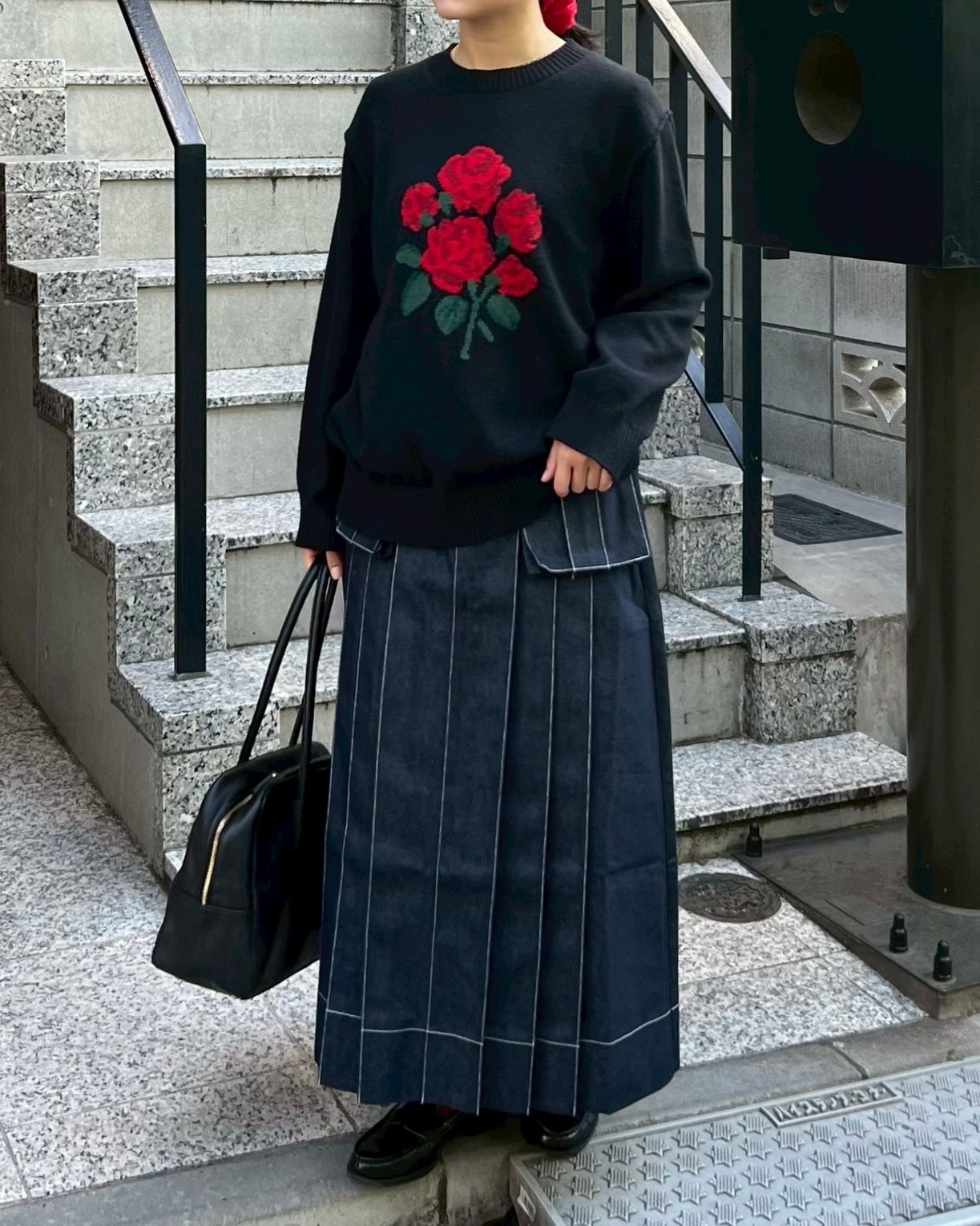 Red bouquet intarsia knit (black)