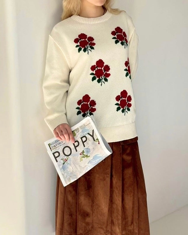 Red Bouquet Intarsia Knit