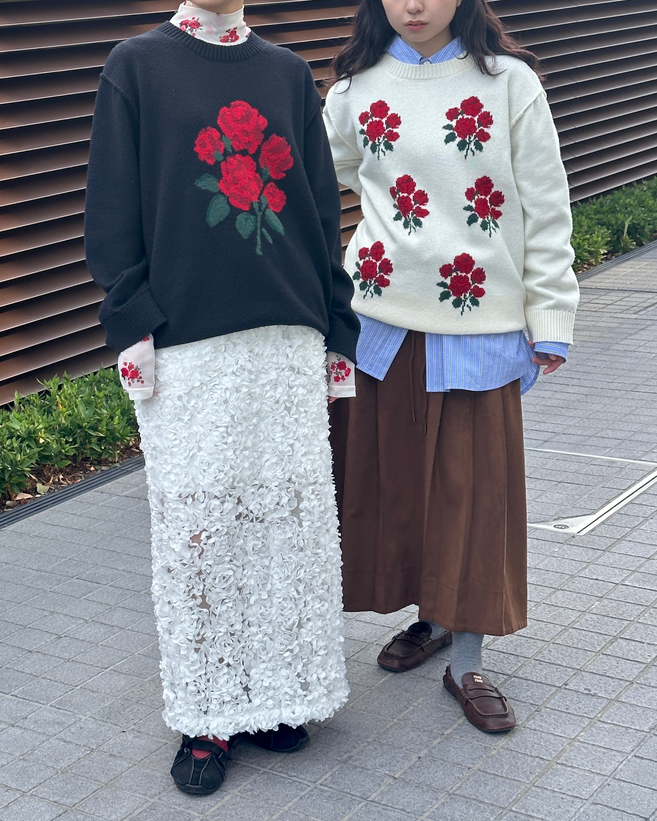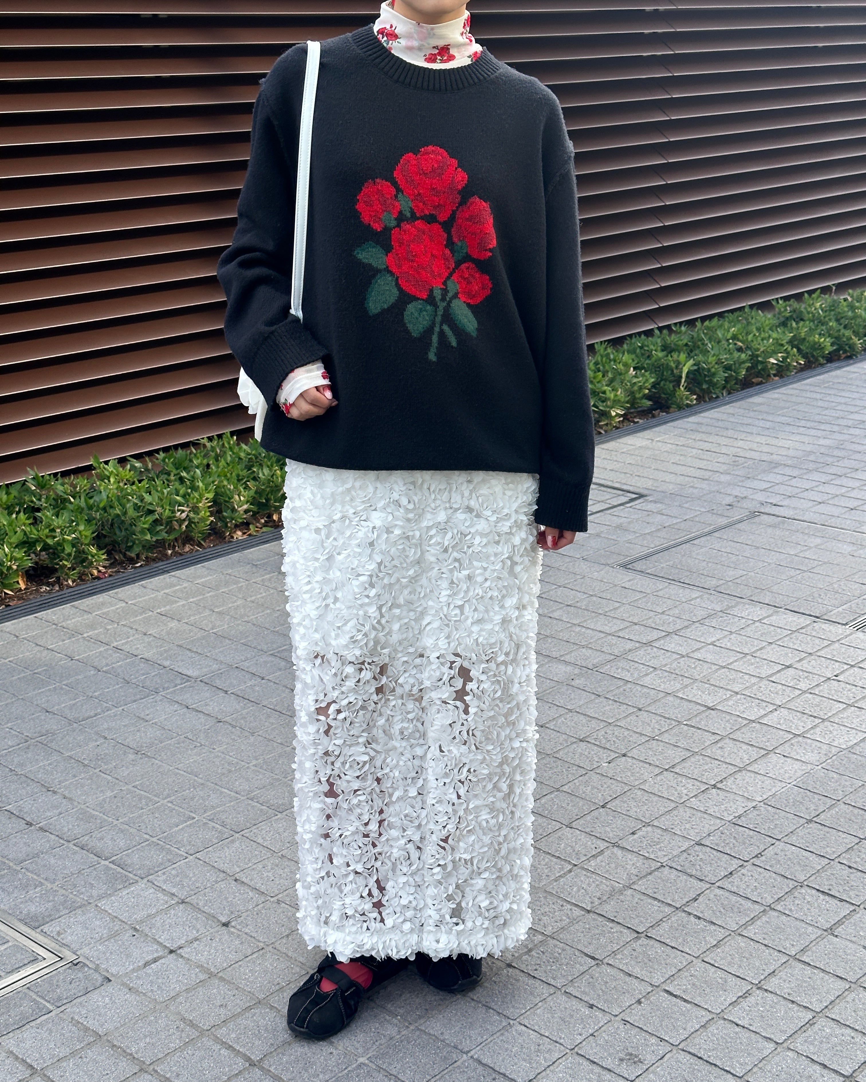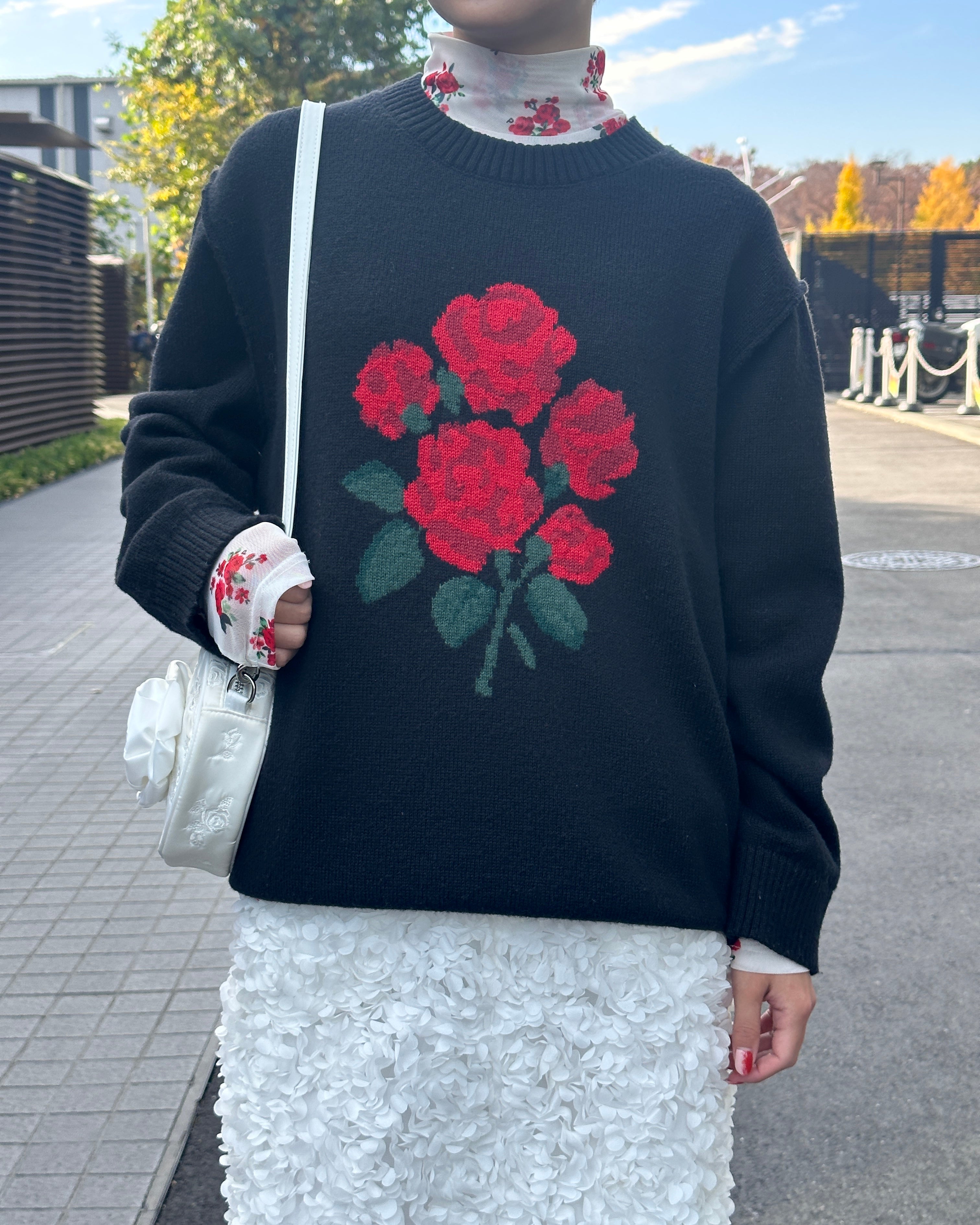 Red bouquet intarsia knit (black)