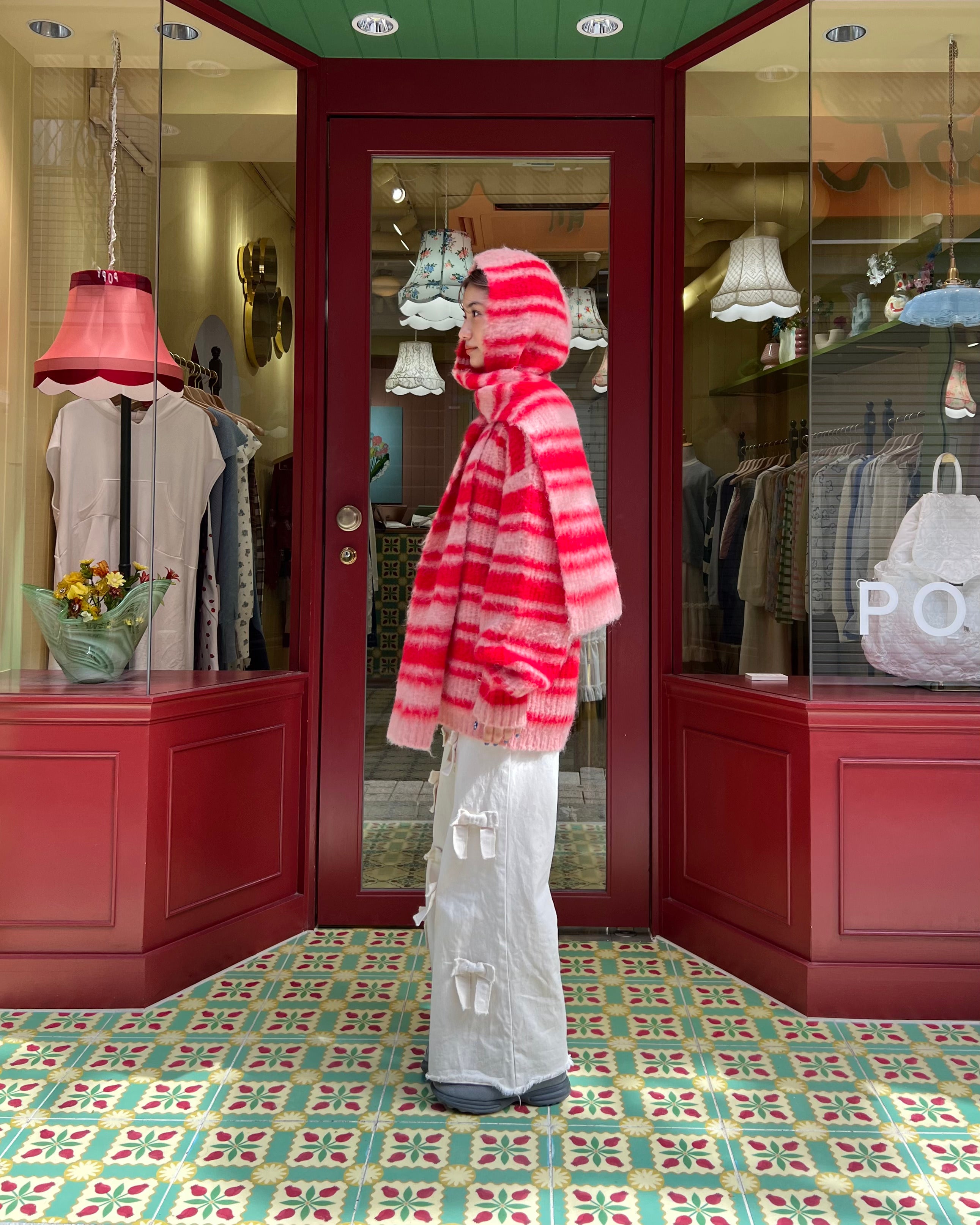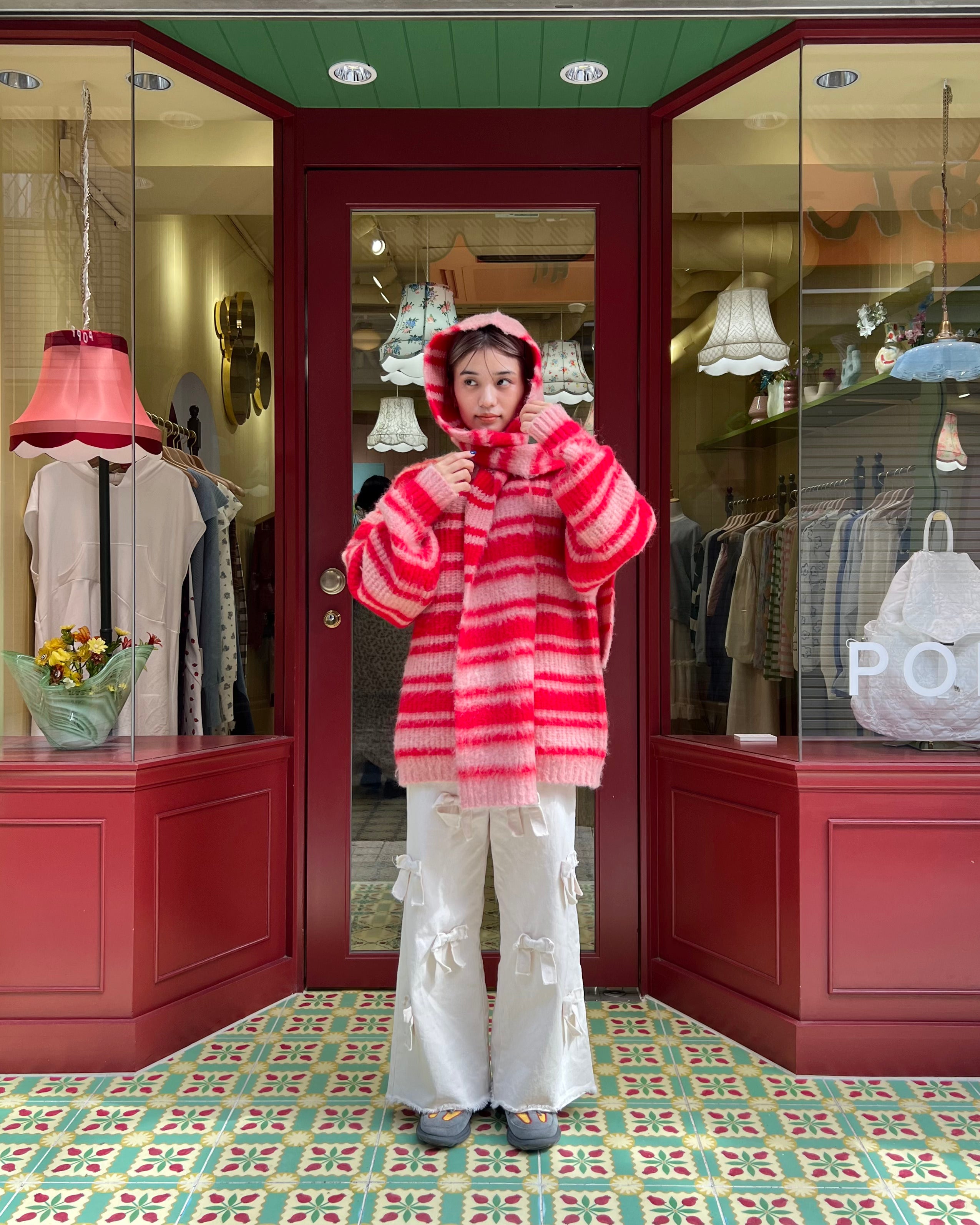 monchi 155cm/natural ●骨骼:波●佩戴物品:邊框針織暖氣器邊境loousen●穿著尺寸:免費●坐標點:將粗糙的針織與牛仔布褲和針織的簡單坐標相結合。🎀●尺寸:針織寬鬆可愛!●材料:您可以穿它而不刺痛🧣