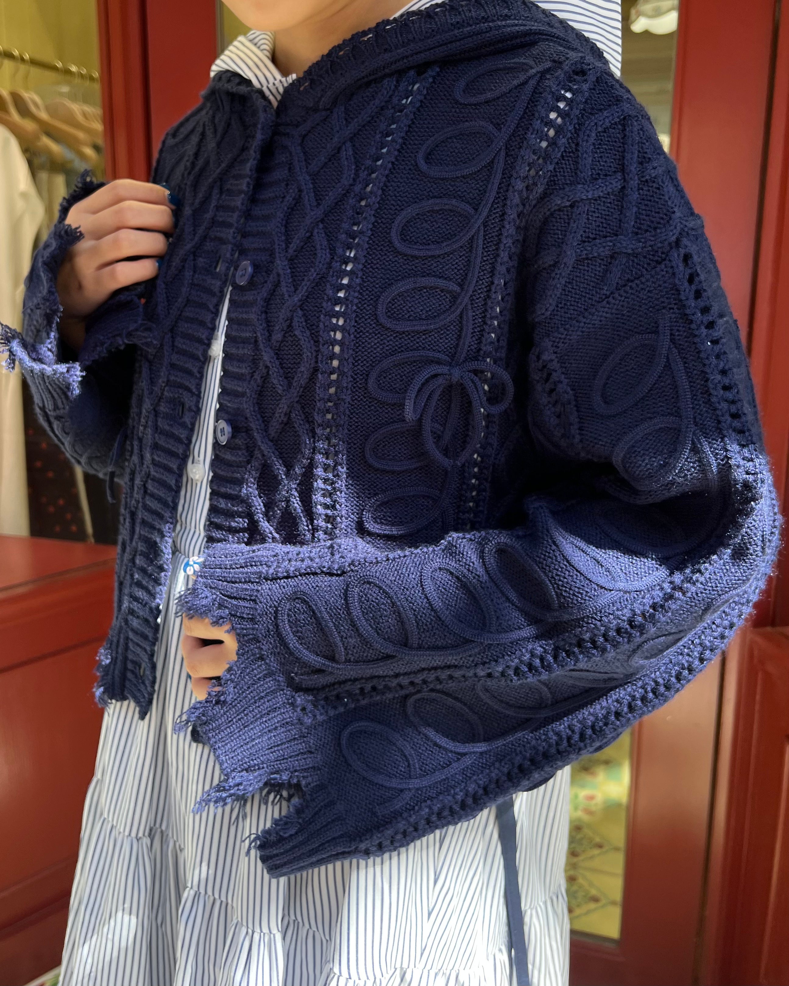 ●骨骼:波●穿著物品:絲帶食品卡片●穿著尺寸:免費●Corde Point:針對夏季連衣裙量身定制的藍色Corde🫐●尺寸:它不是那麼鬆散,但是很容易穿上而無需完美。●材料:此針織不刺痛!
