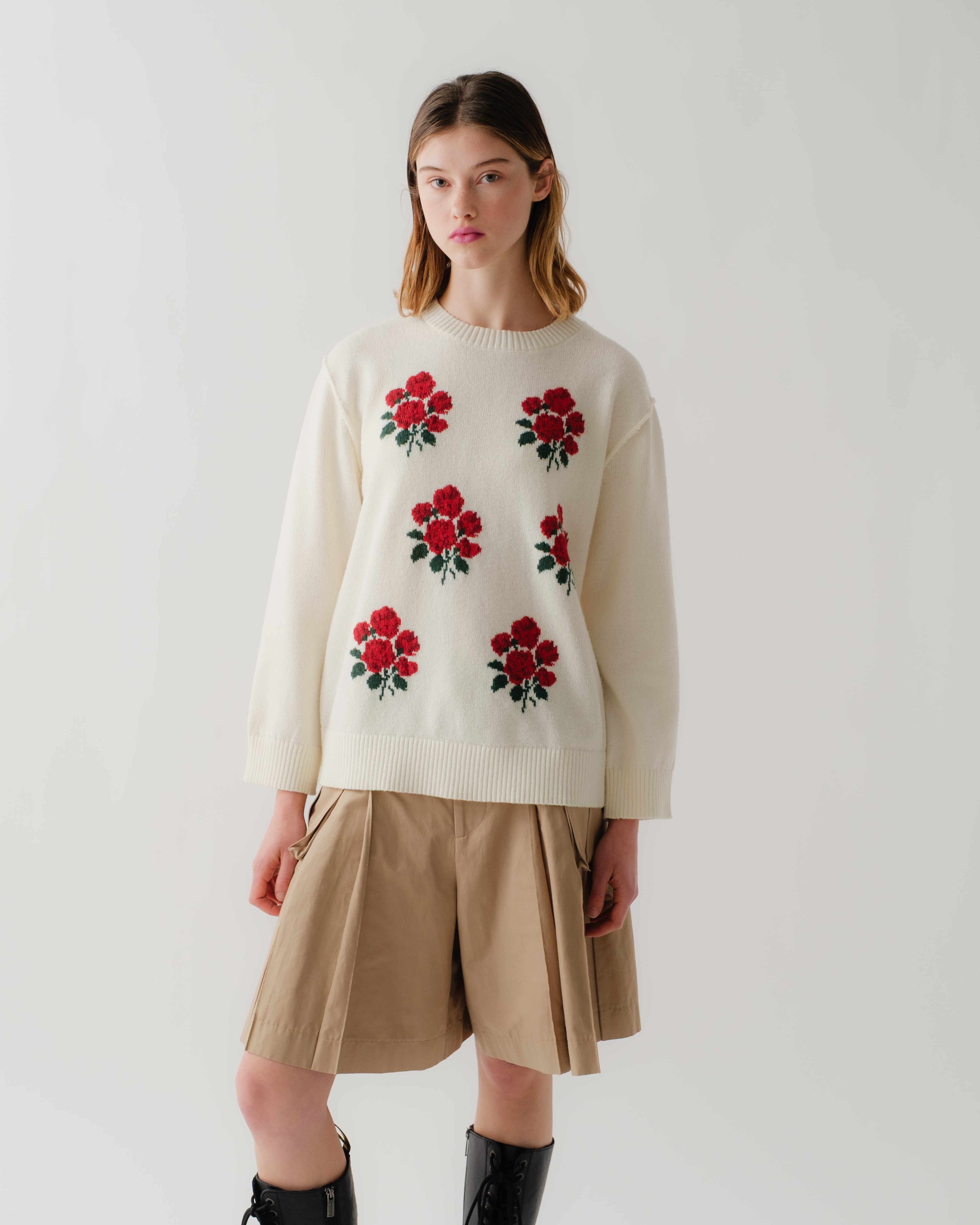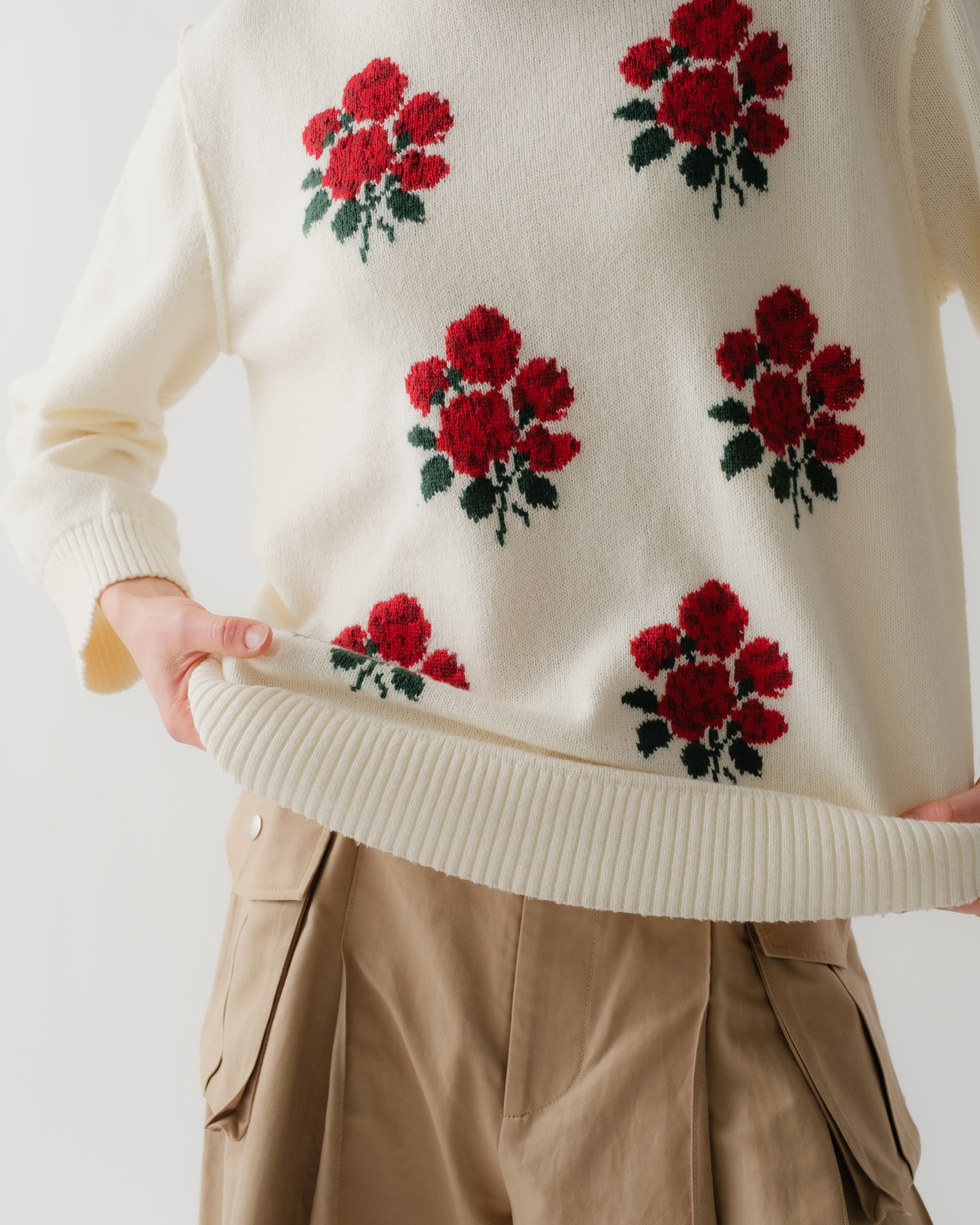 Red bouquet intarsia knit
