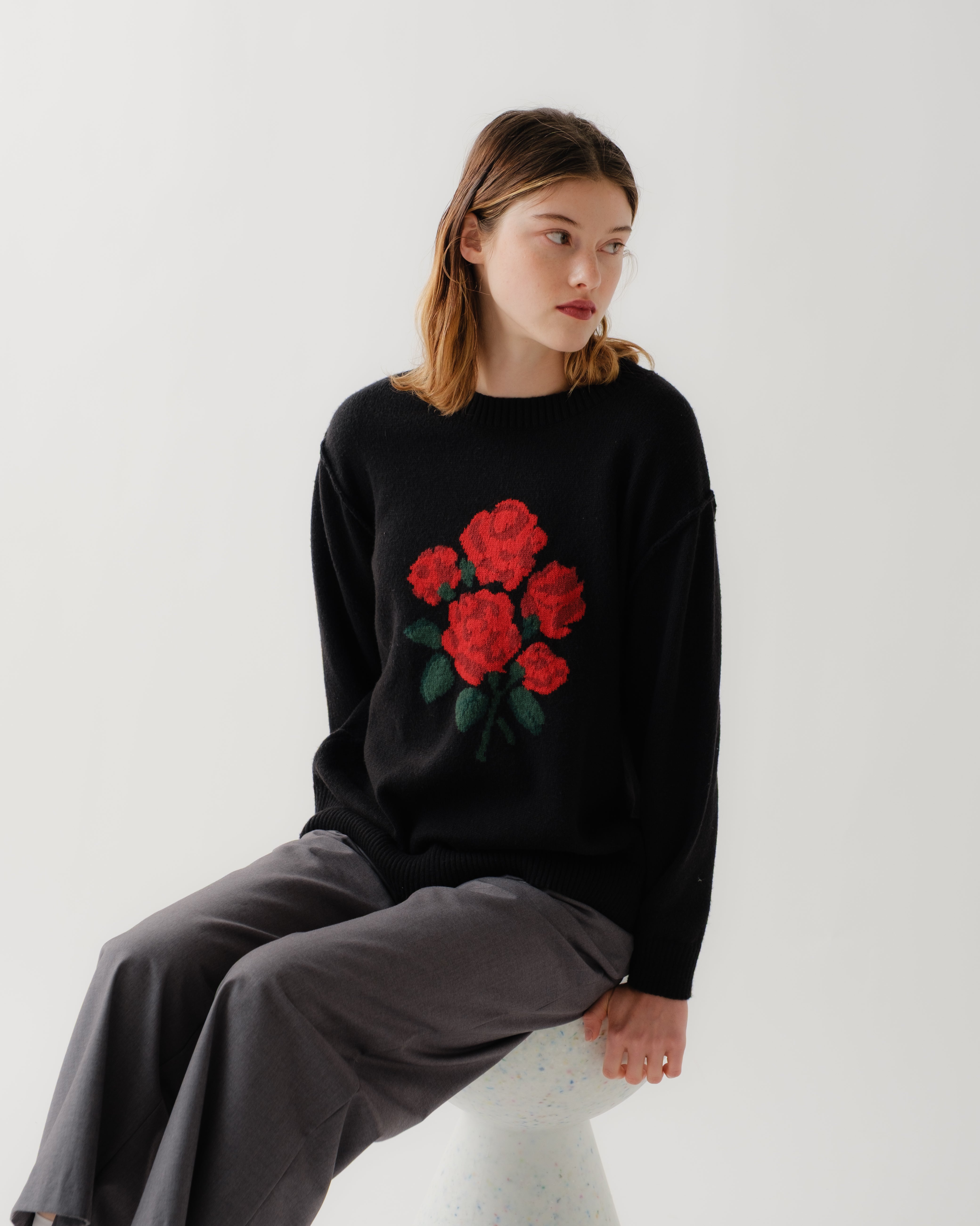 Red bouquet intarsia knit (black)