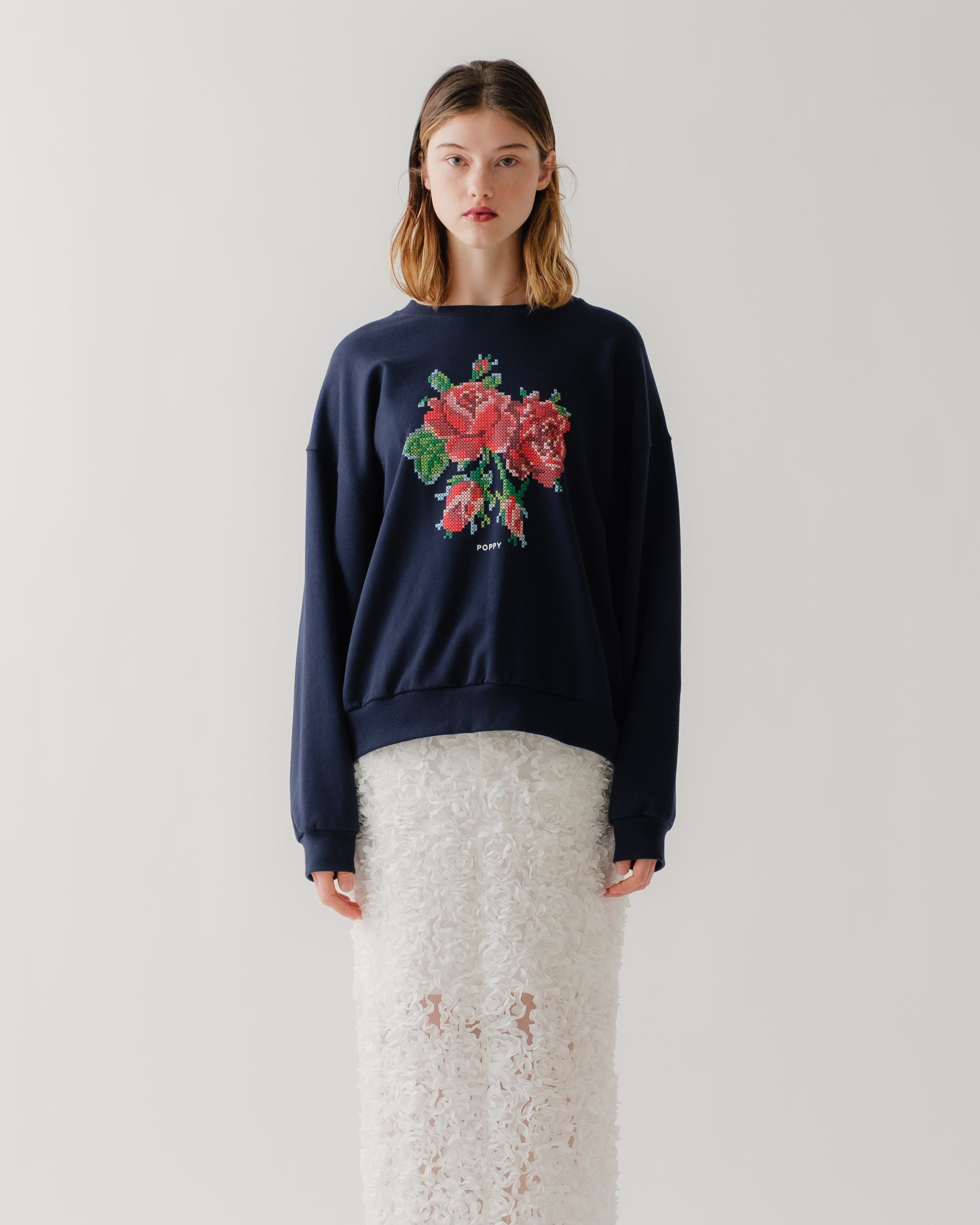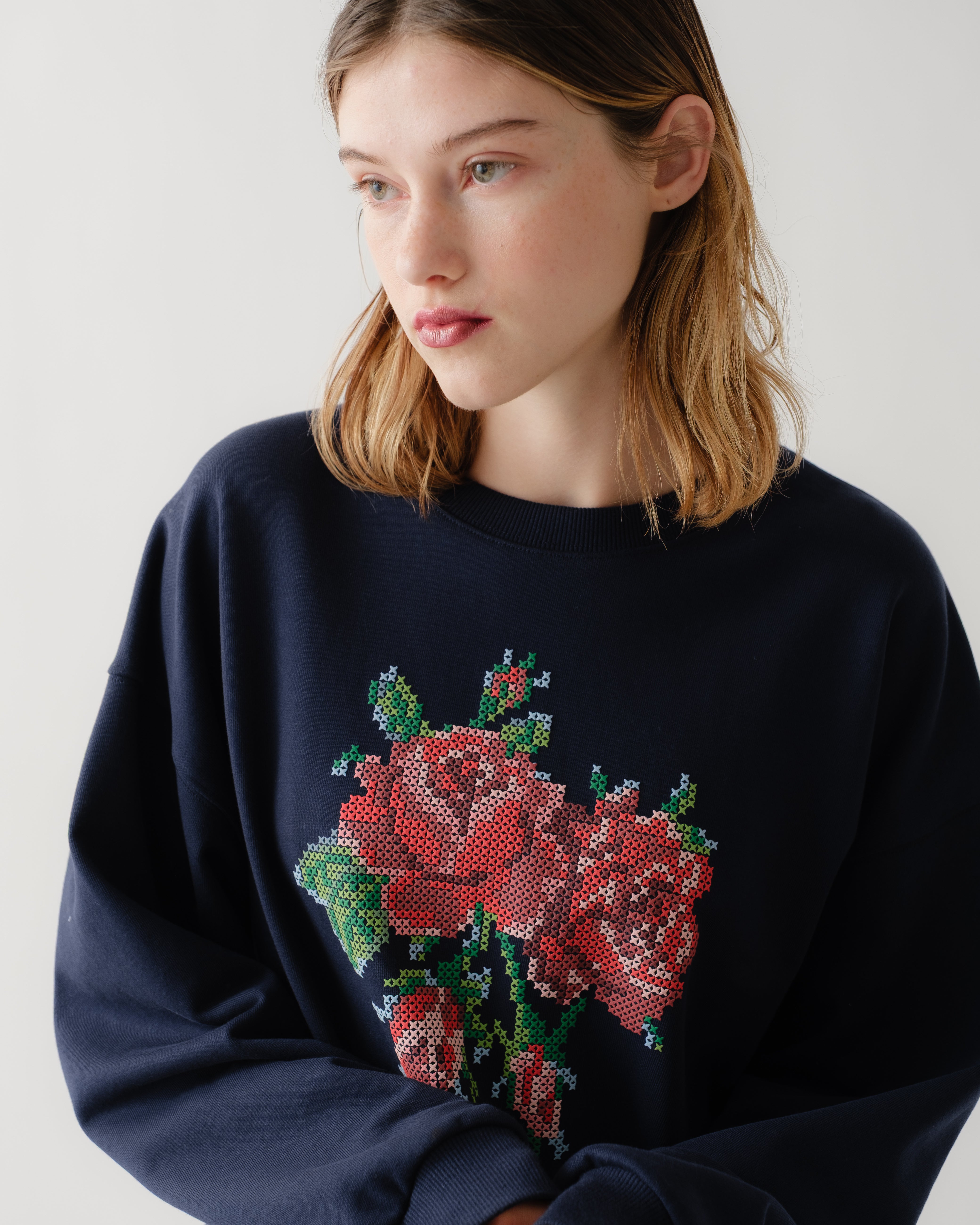 クロスステッチのデザインを立体的な発泡プリントで表現したPOPPYらしい遊び心ある一着。
