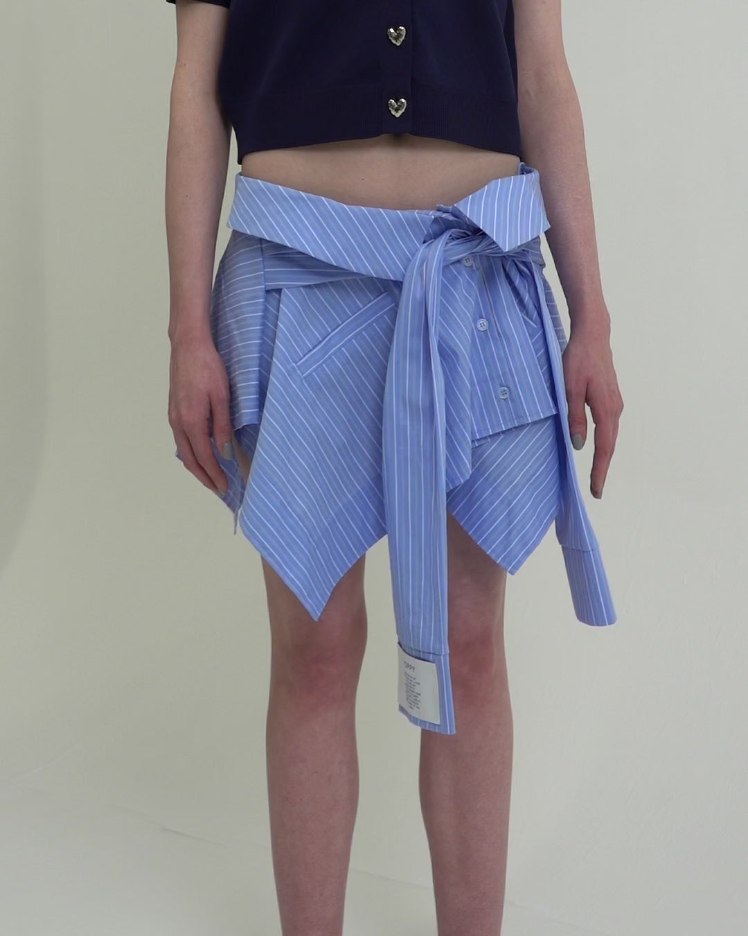 シャツをラフに巻いたような遊び心あふれるデザインが魅力の、ビスチェ / 腰巻きスカートとして楽しめる2wayアイテム。