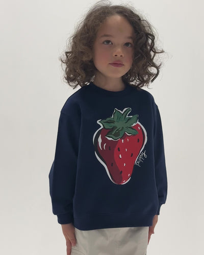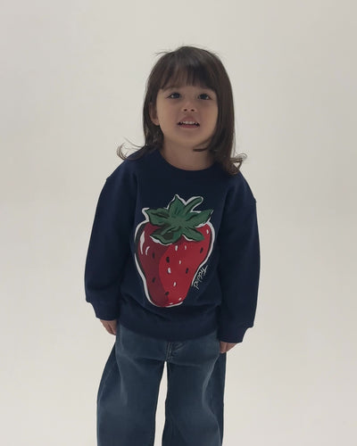 可愛的藝術印刷運動衫,帶有大紅色草莓。
